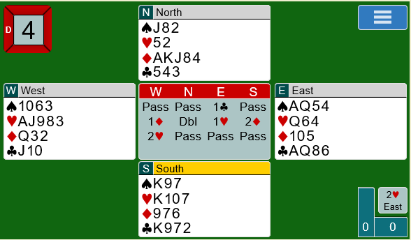 I spill 4 profitterte Espen (øst) og Boye på sitt overføringssystem etter 1 kløver. Det gjorde at de fant hjertertilpasninga allerede på 1-trinnet: