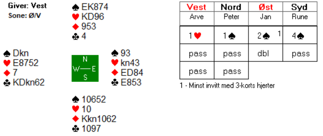 I settets siste spill ble kontrakten 4 spar doblet ved begge bord (meldingsforløpet under er hentet fra åpent rom):