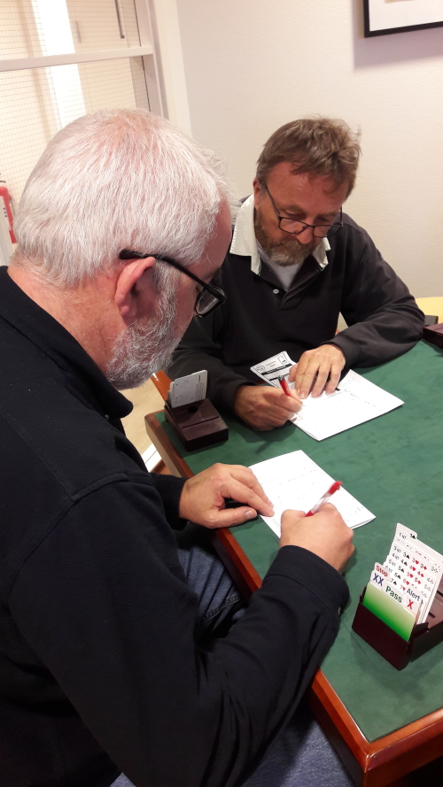 Åsmund Stokkeland (t.v.) og Jan Mikkelsen kan notere ledelse med 37 IMP etter fire av fem sett.