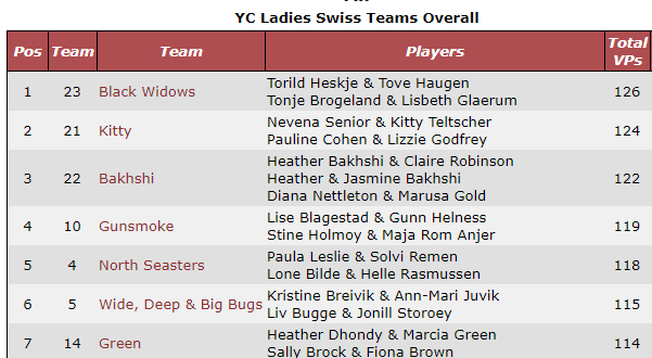 I helgen gikk YOUNG CHELSEA BRIDGE CLUB's Ladies Swiss Teams av stabelen i London.