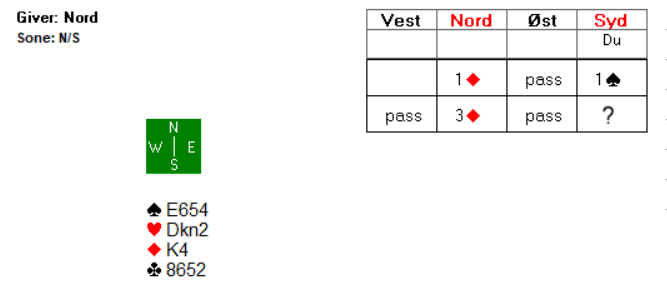 Uansett er det verd å avtale med sin makker hva 3 hjerter skal vise i en posisjon som dette.
