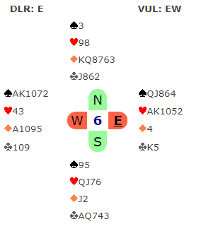 Det (4RU) var nok for øst som gikk via Key Card Blackwood (fikk 3 nøkkelkort) og meldte 6 spar.