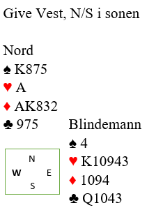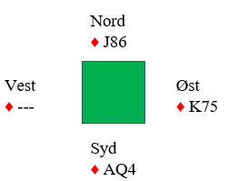 Merk at spiller du esset fulgt av liten mot nord må vest legge liten. Stikker han med kongen oppdager du sitsen og kan ta markert finesse med kløver 10.