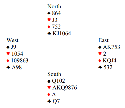 Nord er blindemann og øst motspiller mot syds 4 hjerter.