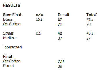 Det arrangeres også mer "offiselle" turneringer som for eksempel ALT INTERNATIONAL i forrige uke, en turnering for åtte internasjonale lag. Som tidligere rapportert i noen artikler her i bloggen endte det med en fin triumf for det engelsk-norske laget De Botton. Her bilder av vinnerne og resultater fra sluttspillet, sakset fra bulletinen: