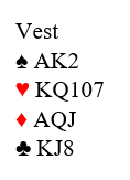 Vest viser i andre runde en balansert hånd med 22-24HP.