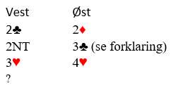 Vest viste så hjerterfargen sin, og øst meldte utgangen i hjerter. Skal vest tenke på noe mer enn utgang her? Vest har jo unektelig veldig flotte og sterke kort?