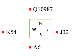 Da spillet forekom satt ruteren som i diagram 6. De som spilte korrekt startet med ruter ess og ruter til damen, og da knekten kom på vant de ti stikk (2+2+4+2=10) og fikk en god score. De som startet med esset, men feilaktig la tieren i andre ruterrunde fikk ni stikk.