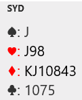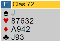 Syd hadde åpnet med 3 ruter med disse kortene:
