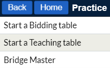 Merk at der er det også muligheten for å opprette et opplæringsbord (teaching table) som kan brukes hvis du har tenke å lære noen bridge, eller trene dem. På opplæringsbordet er det mange muligheter.