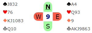 Det er normalt å havne i 4 spar som Ø/V med disse kortene. Der må kløveren løses med kun en taper, og den fargen sitter snilt. Det er imidlertid et problem her, trumfen sitter 4-1.