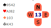 Ps. I teorien kan 7 ruter vinnes. Det forutsetter imidlertid en spilleplan som ikke er riktig å satse på. Det blir å spille med åpne kort og velge en marginal plan som fungerer kun med en spesifikk sits. Så dette blir for de spesielt interesserte. Men på resultatsiden står det under spillene en computeranalyse som forteller hvor mange stikk som kan vinnes, og der står det at det KAN vinnes tretten stikk i ruterkontrakt her - i teorien. Hvordan?