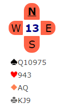 Syd har veldig mye ekstra også etter disse meldingene, men 6 av poengene er motpartens farge så det kan kanskje bli litt for tynt i de andre fargene for slem. Andre ganger hvor nord har sterkere kort kan slem være nedelegg.