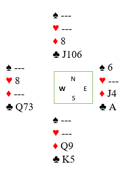 Woolsey gjettet riktig da han ikke tok ruterfinesse, og han lot kløver ess ligge. Han spilte inn øst på den andre honnøren, og dette var blitt situasjonen: