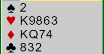 Nei, det er vel ikke så dårlig om en ser bare på N/S sine kort. Kløveren må være uten taper siden Ø/V har hjerter ess. I tillegg til det må det sitte sånn noenlunde, så 6 kløver er litt for hardt selv om det er en slem som godt kan fyke hjem.