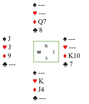 Denne planen fungerer heller ikke så godt mot Q10xx i hjerter i vest, men da er jeg også usikker på om det er like rett frem å få 11 stikk? Det kan du få pusle med selv.