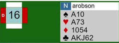 Nå er den uheldige engerdøl på høyden. Han ser at hvis han nå spiller den stående ruter-dama fra bordet så vil vest få alvorlige problemer hvis han sitter igjen med hjerter-kongen som sin ene hjerter. Hvis han har hjerter-konge vil han garantert kaste en spar!