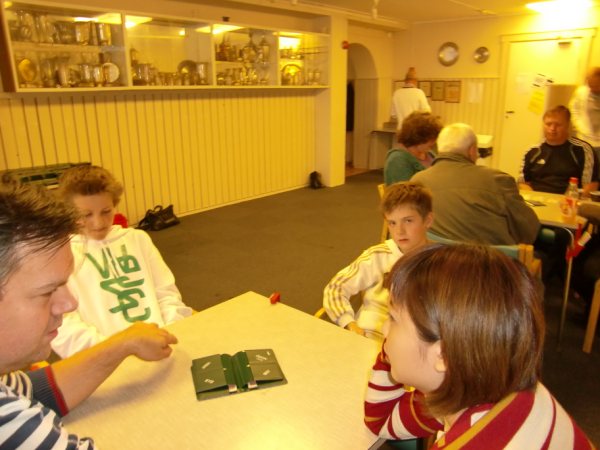 Masse artige kort, og flere slemmer. Niels Christian og Kolbjørn vant foran Arne og Øyvind. Gledelig 3. plass til Torill, denne gang sammen med Roger. Klubbens høyest rankete spiller Rolf rykker ned Eva, sammen med Toralf og John Sandberg. I B-Pulja så var det gledeligmed 6,5 bord denne gang. Endelig så klarte Bent og Roger å rykke opp sammen med William og Hilde. Neste mandag så er det spilling på Folkets hus på Ski. Møt opp så mange som kan. Send gjerne beskjed til vår mailboks om du kommer. kan jo kjøre flere sammen. Noen ønsker ikke å spille mandag, tirsdag og onsdag. Foreslår at disse spiller mandag og onsdag. Tirsdag blir det derfor kun en pulje uten opp og nedrykk.