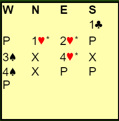 En kan spille det som naturlig (typisk god sekskortsfarge og så bra kort at han ikke bryr seg noe om at nord har vist fire hjerter), men mange bruker sikkert Michaels Cuebid i denne situasjonen, dvs. spar og en minor (minst 5-5).