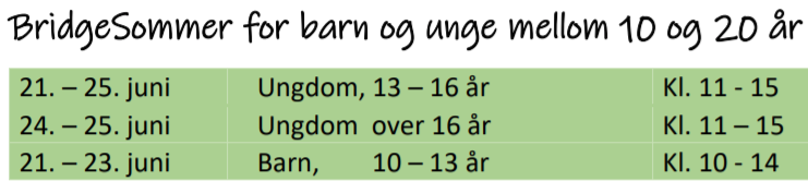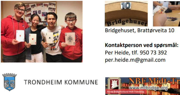 Midt-Trøndelag Bridgekrets har sendt ut informasjon til alle sine meldlemmer om tilbudet hvor Trondheim Kommune har tatt med bridge i sitt sommerskoletilbud, og bridgekretsen får også økonmisk støtte til tiltaket.