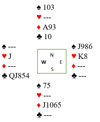 Utspillet ble stukket med esset og kongen kom på fra vest. Etter en trumfrunde og hjerter til esset spilte Arve kløver fra syd. Vest stakk opp og fridde seg med hjerter dame som ble stjålet hos nord. Så fulgte kløver til stjeling før syds siste hjerter ble trumfet hos nord. Dette var igjen:
