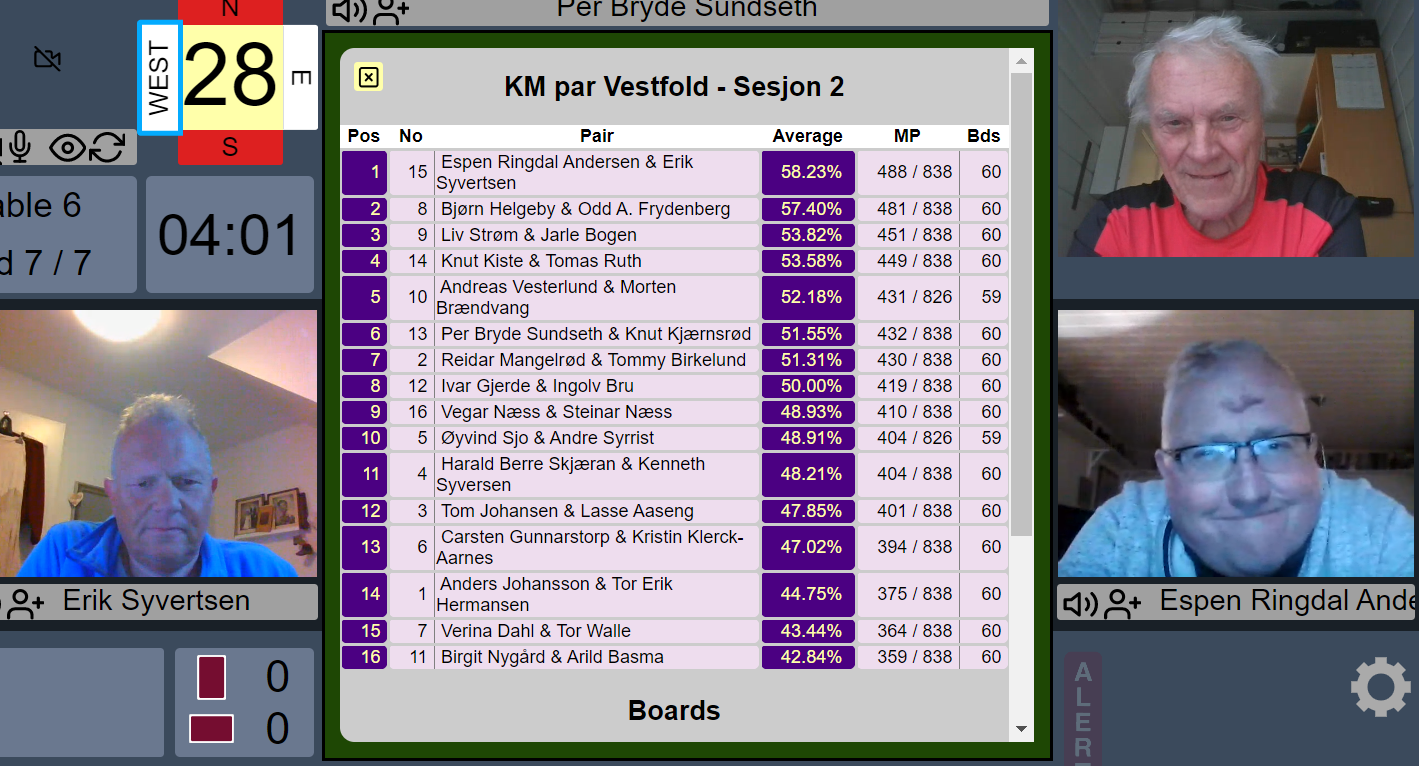 Her er linken til femte kvelden i sommarbridgen: Start kl 1930, logg deg på seinast 15 min før.
