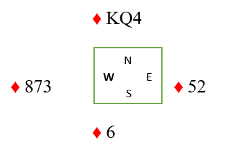Forskjellen er at ruter 5 som i dette tilfellet er i behold nå har blitt et like stort kort som åtteren som er den nest høyest ruteren. Idet spillefører kommer inn spilles simpelthen ruter 5 som presser ut nords siste honnør, og ruter 8 er godspilt for ett sparavkast, kontrakten hjemspilt.