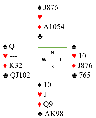 Grunnen til at du ikke kunne ta begge kløverhonnørene før du trumfet hjerter var at hvis det gjøres kan vest idet han er inne på trumfdamen fri seg med kløver og vente på å få beten med ett ruterstikk.