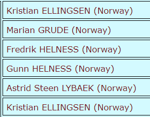 Her er den norske lagoppstillingen i klassen for mix-lag: