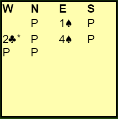 Det er en ekkel hånd å melde for nord over vests 2 ruter. Hun er alt for sterk for en enkel innmelding. Dobler er et alternativ, men det fører ofte til vanskelige situasjoner senere fordi du har to farger som bør vises, spesielt hvis Ø/V melder aktivt.
