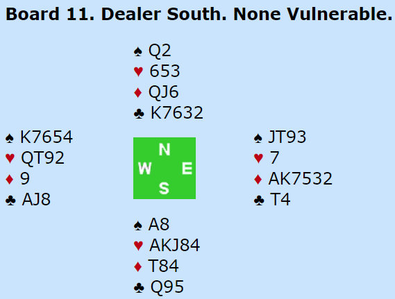 Spill 11: Vanskelig valg i trumffargen. Vist gjettet riktig, den franske damen bommet. 10 IMP til Norge