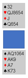 I en amerikansk lagturnering så kortene slik ut (da spillet forekom var det Ø/V som satt med kortene som tilsa en potensiell slem):