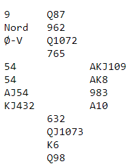 Nord var blitt lurt litt her, men han har nok i ettertid kommet frem til at å spille kløver idet han var inne er logisk uansett. Han ser jo at ruteren vil bli godspilt. Ø/V hadde ikke vært innom noen ess-spørring, og det kan vel hende øst faktisk har kløverkontroll, men bare en singelton? Nei, det stemmer ikke helt det heller. Med singelton kløver og en rutertaper ville nok spillefører ha prøvd kløver mot kongen for å godspille den. Men det er noe muffens her, hvorfor går han på ruteren med det same uten å ta ut trumfen? Kan han ha bruk for trumene senere? Men ruteren vil altså bli godspilt...