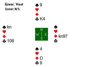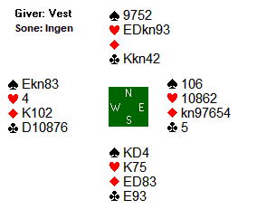 Da ruter konge kom på under esset, gikk det opp et gledelig lys for Thomas. Vest var nemlig skvist sønder og sammen i følgende posisjon: