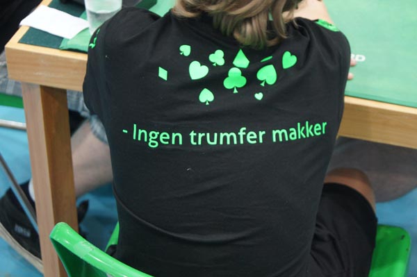 Etter å ha spekulert ei stund på hvilken av de to variantene han skulle gå for, valgte Christian Fredrik til slutt å stikke med spar ess, for så å spille ruter til knekten. Da den holdt stikk, fortsatte han med ess-konge i farga og saket håndas to hjertere.