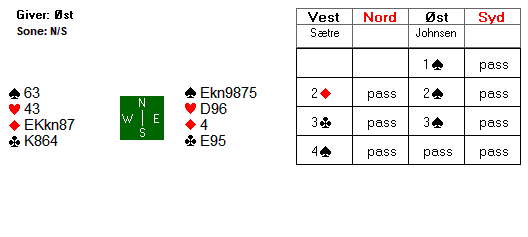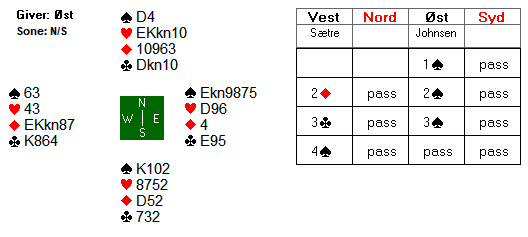 Motspillet startet med en liten hjerter til kongen i nord, før det ble skiftet til spar 4. Hvordan planlegger du spilleføringa?
