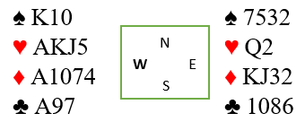 Før spillefører bestemte seg om hvilken vei han skulle spille ruteren tok han fire runder hjerter. Syd fulgte farge alle fire rundene, og dermed var han plassert med ni kort i hjerter og kløver. Nå er det klart størst sjanse for å spille på ruter dame hos nord som trolig har ruterlengden. Ruter ess ble fulgt av ruter til finesse, men kortene stemte ikke med sannsynlighetene i dette tilfellet: