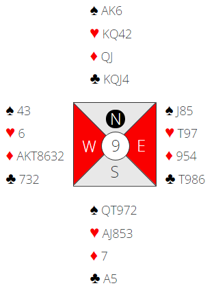 I min forhåndsskrevne omtale av spillene gjettet jeg på at å melde lilleslemmen som i praksis er nedlegg ville gi bra spill, men de som var i 6 hjerter og fikk de tolv stikkene som er der fikk kun strø over middels. Det var en rekke +1010 for tretten stikk, alle hvor kontrakten ble spilt av nord. Da måtte øst finne ruter i utspill for å få poeng. Tretten stikk i slem ga nesten 80% til N/S.