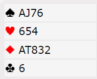 Kvalifisingen startet tirsdag. Da kom et spill av typen jeg hater, men heldigvis spilte ikke makker og jeg den kampen og var ikke involvert. Det er sånne slemspill hvor ofte enten eget lag eller motparten er i slem ved det ene bordet, og motsatt ved det andre. Da koster det ofte IMP i bøtter og spann (dobbelsving), og i jevne kamper over kun 12 spill betyr det en haug med VP hvis et valg, eller utspill avgjør det hele. Brutalt.