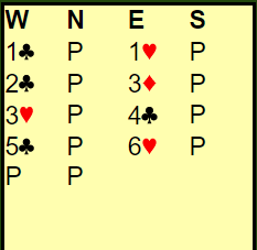 Merk at slemmen som vinnes er 6 kløver, men spilt av øst! Da er spar konge beskyttet. I kløverkontrakt gir østs hjerter mer enn nok avkast. Spilt av vest er 6 kløver avhengig av at nord ikke finner spar i utspill.