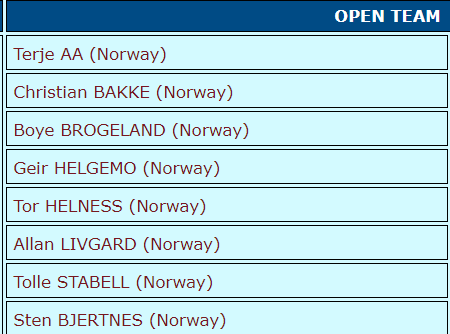 På laget vårt var nevnte Tor som allerede som junior spilte for Norge i åpen klasse på den tiden. Hans makker som dessverre har forlatt oss var John Kåre Schjeldrupsen som også var med i 1980 da Norge vant. Det samme, gull i 1980 vant lagkamerat i ‘82 Per Bjerkan som dessverre heller ikke er blant oss lenger. Han spilte med Glenn Grøtheim, og selv spilte jeg med Roar Aasen. Tarjei Eck Hansen var non-playing-captain.