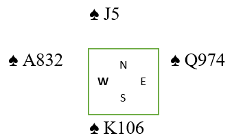 Riktig spill her er normalt å spille på at nord har kongen, foran det kortet du ønsker skal gi stikk (damen). Så esset fulgt av liten mot damen er beste fargebehandling.