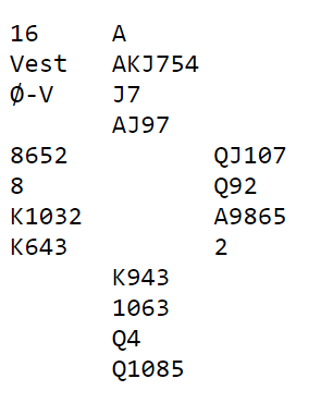 Her er et spill hvor valg av utspill spilte en rolle, men uansett utspill kunne spillefører vinne sin kontrakt. Dog var det ganske vanskelig samme hva øst valgte å spille ut. (Giver vest, Ø/V i sonen)