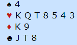 Det er vel tre alternativer, 3 hjerter, 4 hjerter og 1 hjerter. Hvis man spiller med en aggresiv stil for sperremeldinger på tre-trinnet utenfor sonen er dette kanskje litt vel gode kort til å gjøre det. Men å melde inn 1 hjerter kan gjøre det enkelt for motparten.