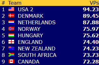 Norge har 35,39 VP etter 6 av 23 runder, og ligger foreløpig på 22.plass blant de 24 lagene.