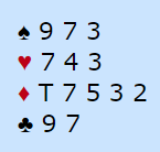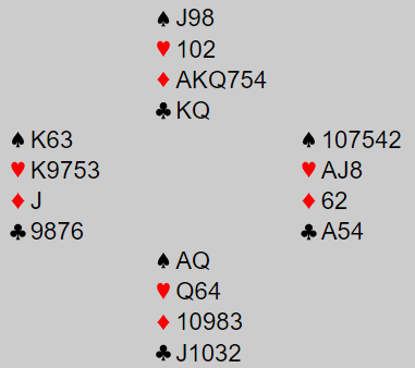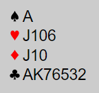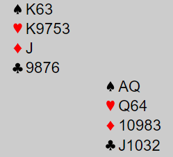 Og det er tretten stikk i spar-, kløver- eller grandkontrakt om ikke det kommer hjerter ut.