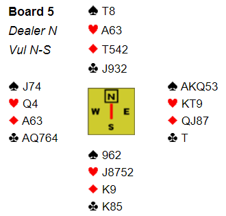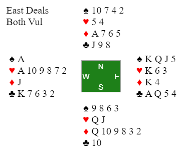 Vår motstander virket nokså uinteressert og så ikke ut som en mann som var i ferd med å bli skviset, så kløverfinesen ble tatt i tolvte stikk. Slik satt det: