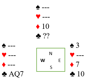 Dette er nords kort mot slutten, men du vet ikke hvilke kort de to kløverne er. Spillefører vet nord har en ruter.