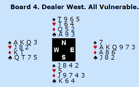 Østs 4 kløver var et "fake cuebid", en bløffmelding! Hvis han melder normalt, eller korrekt om man vil, sier han 4 ruter over 3NT. Da slår vest av, for de har ikke kløverkontroll. Korrekt, javel...men man kan ikke være helt korrekt hele tiden hvis man har tenkt seg å bli verdensmester!