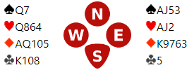 Nord spiller ut en liten kløver, syd setter i kløver knekt og kongen gir stikk. Spillefører har åtte toppstikk og må prøve spar- eller hjerterfinesse for å få tak i det niende. Det ser litt mørkt ut, for syd er favoritt til å ha begge kongene og hvis han kommer inn på en av dem tar de fire kløverstikk. Hvilken finesse ville du prøvd?